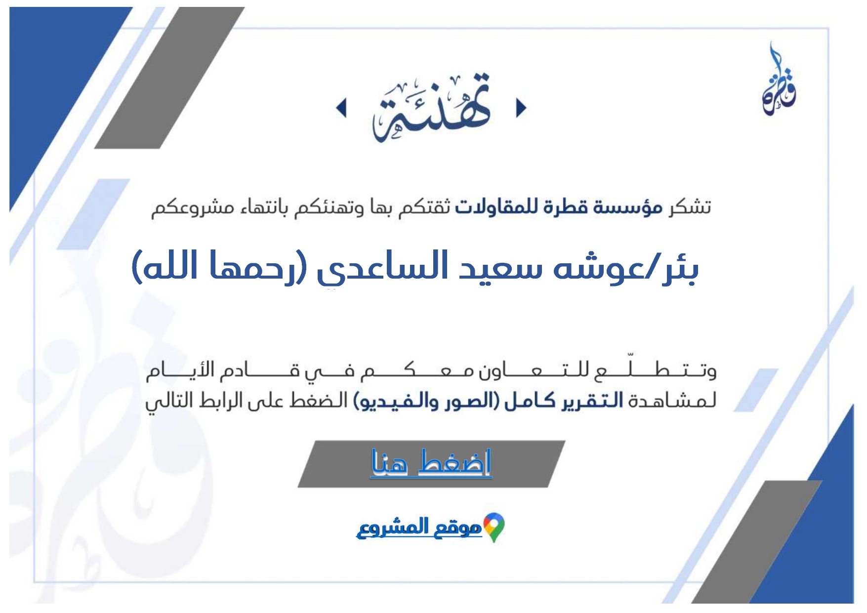 إحداثيات دقيقة للموقع : نرسل لك موقع البئر أو المسجد عبر خرائط Google.